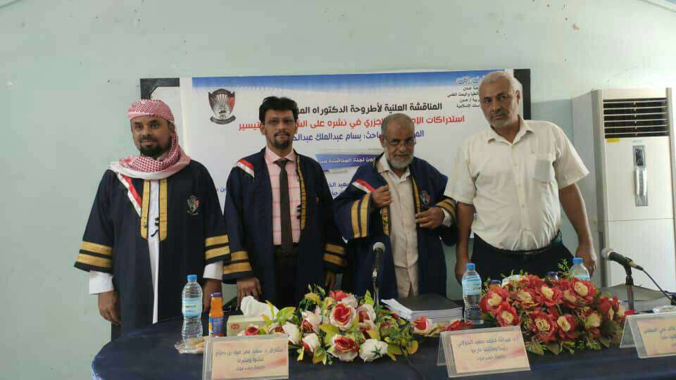 حاز الباحث اليمني، ، بسام عبدالملك عبدالحميد درجة الدكتوراه في الدراسات الإسلامية ، بتقدير امتياز، من كلية الدراسات العليا بجامعة عدن.
